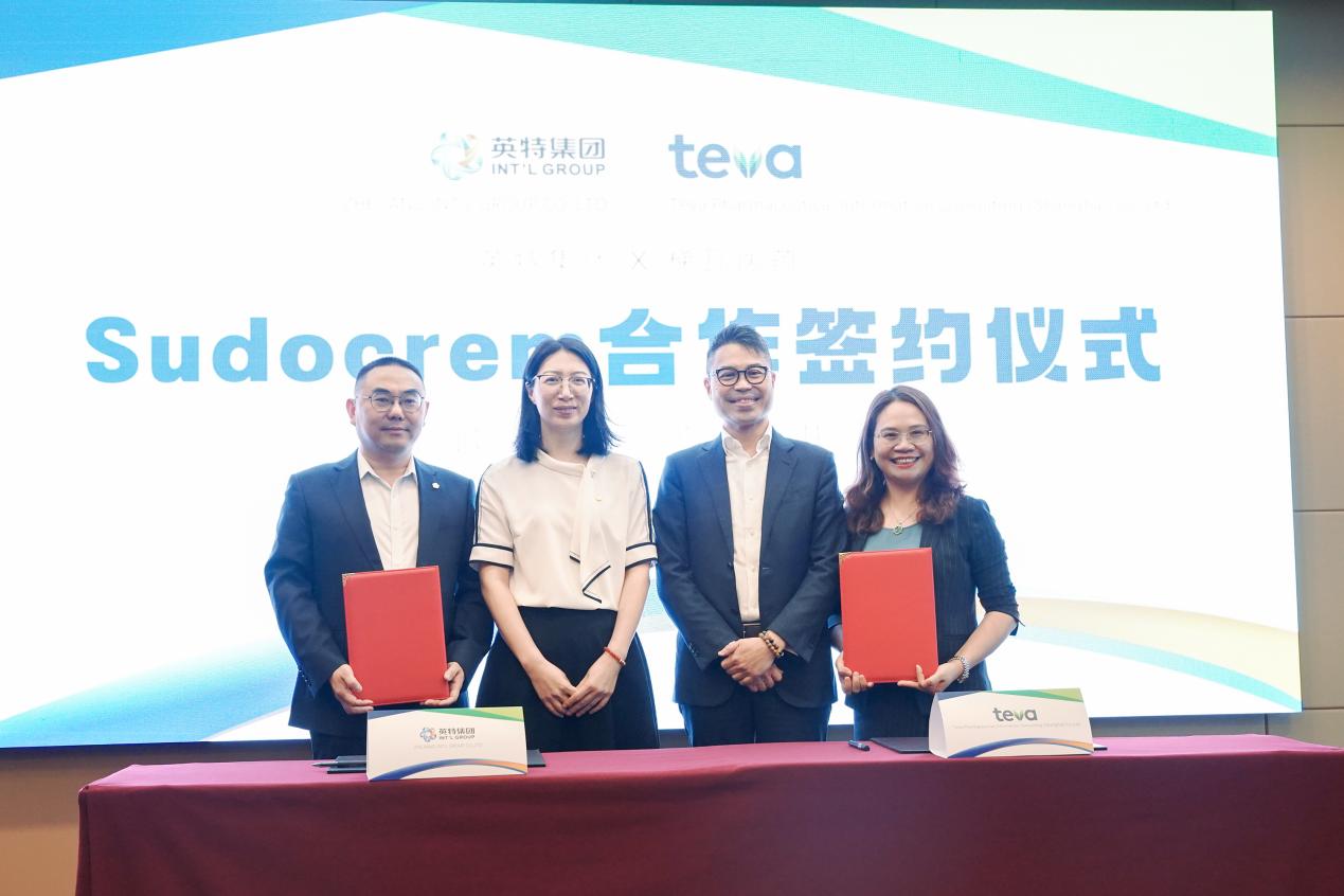 會上,英特集團與梯瓦中國舉行戰略合作簽約儀式,英特國際與梯瓦中國簽訂關于Sudocrem產品跨境電商合作協議。